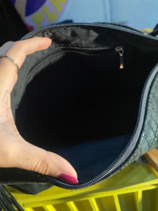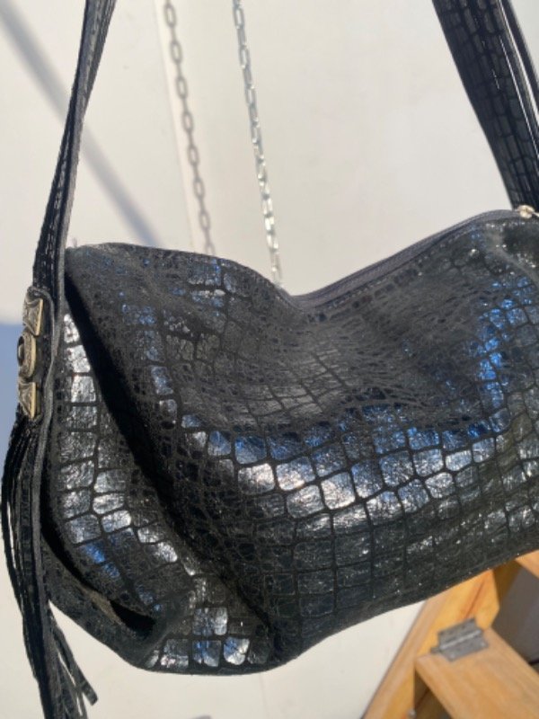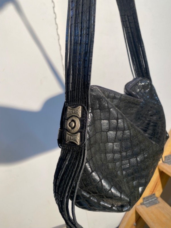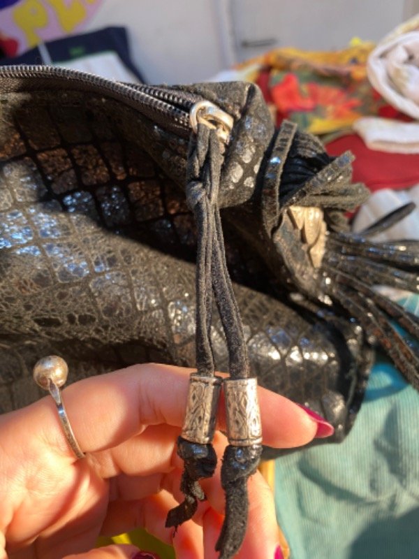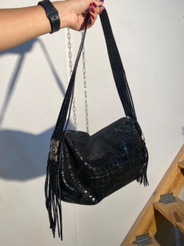 Cartera de cuero genuino estampado símil croco con flecos, igual a nueva ✨
