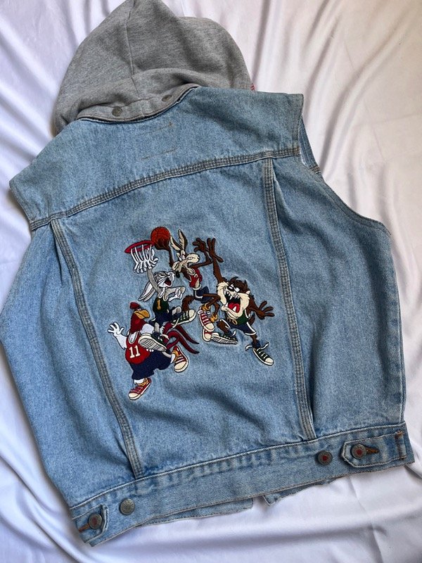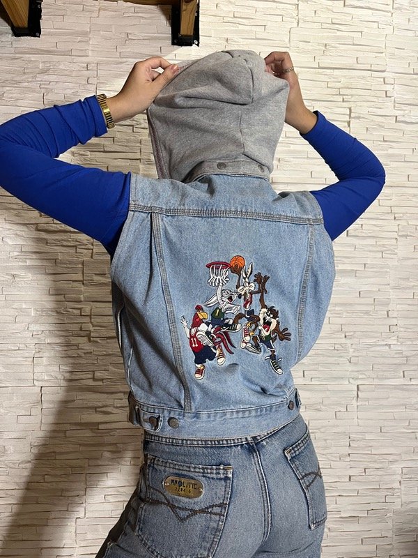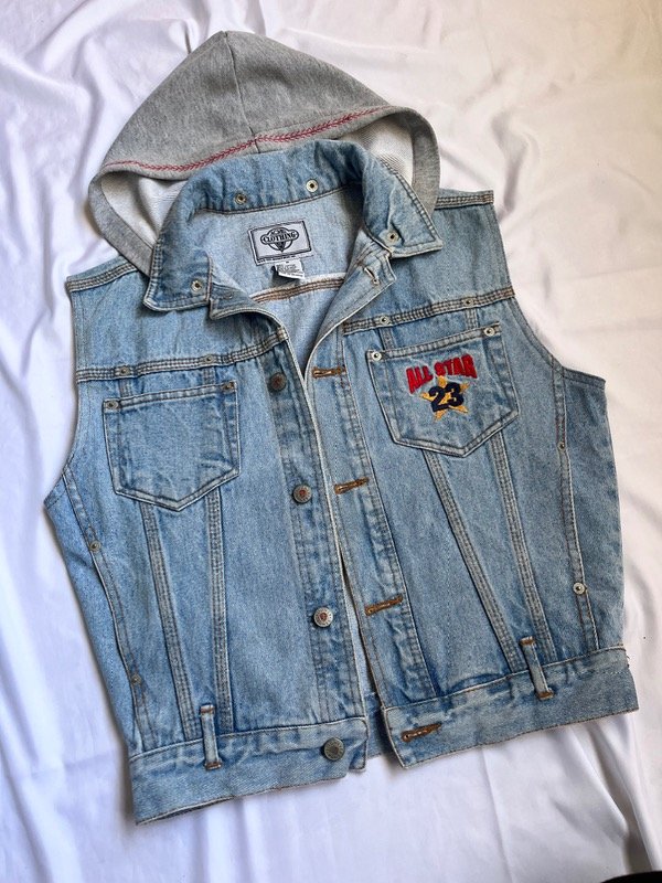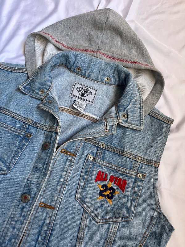 Chaleco de jean con capucha desmontable, talle S/XS