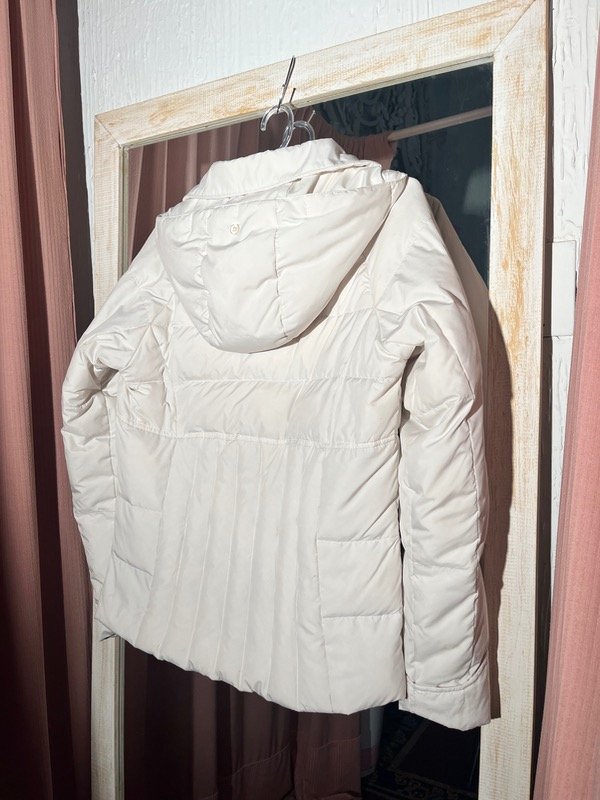 Campera de plumas original, con capucha, mangas ajustables, talle S y va para M tambien