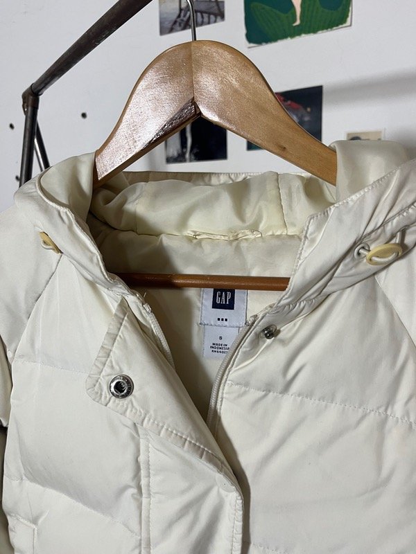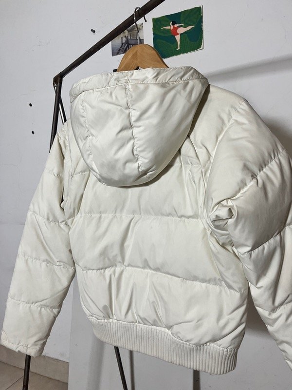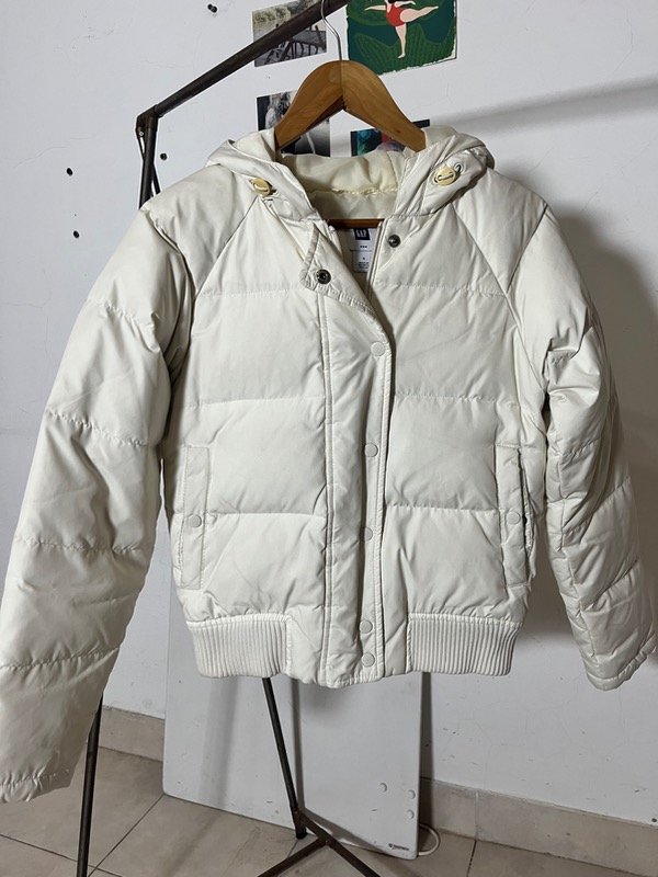 Campera de plumas súper abrigada y liviana, con capucha y bolsillos de polar (mantiene las manos calentitas) , talle s/m