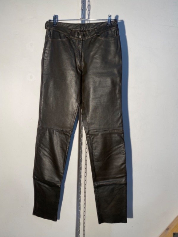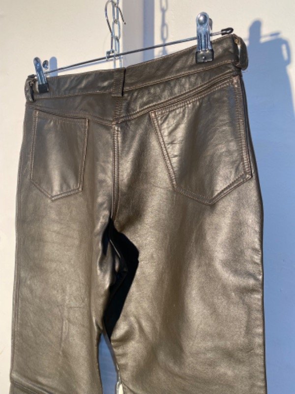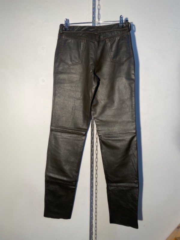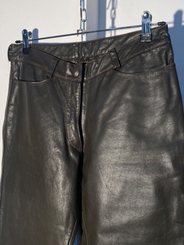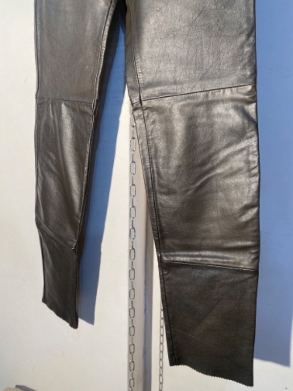 Pantalón de cuero genuino, forrado hasta media pierna, color marrón oscuro