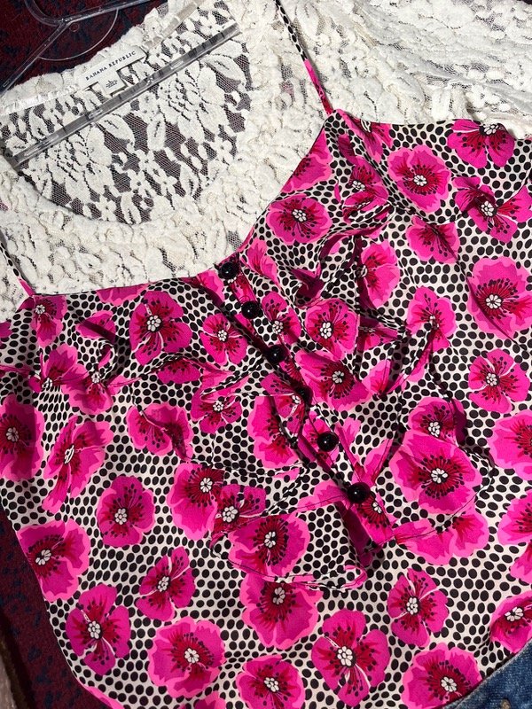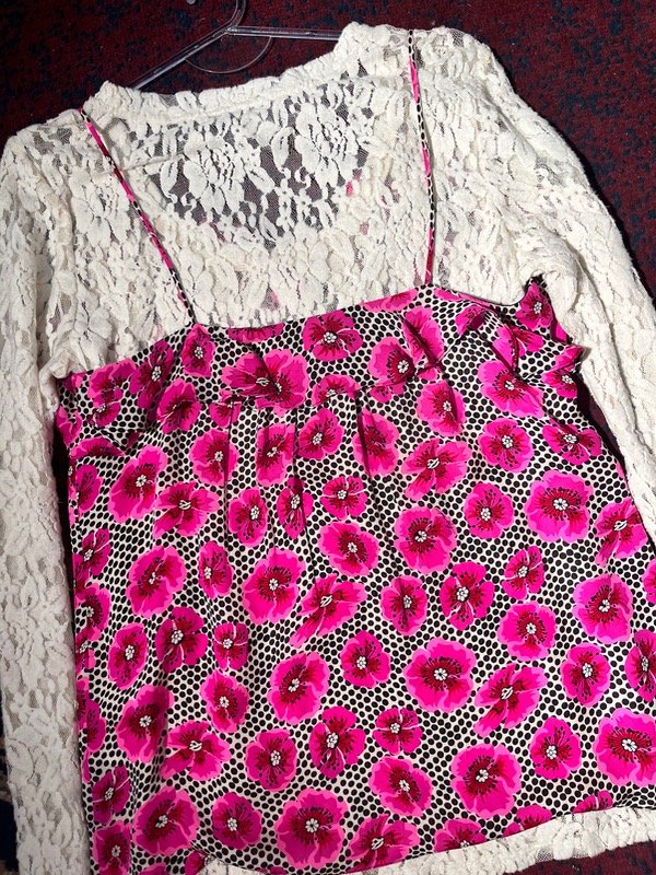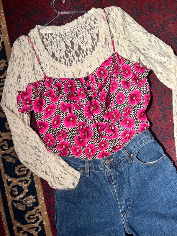 Blusa de seda con cuello jabot, con colores vivos e impecable