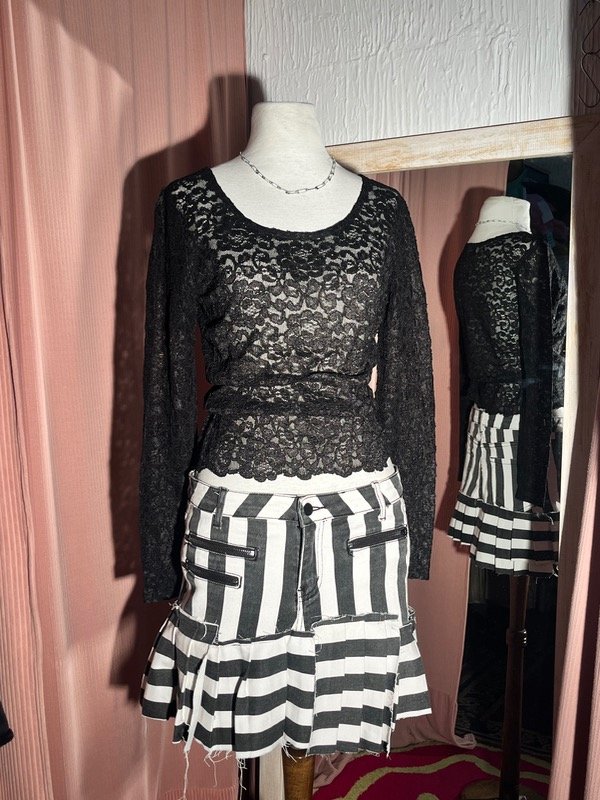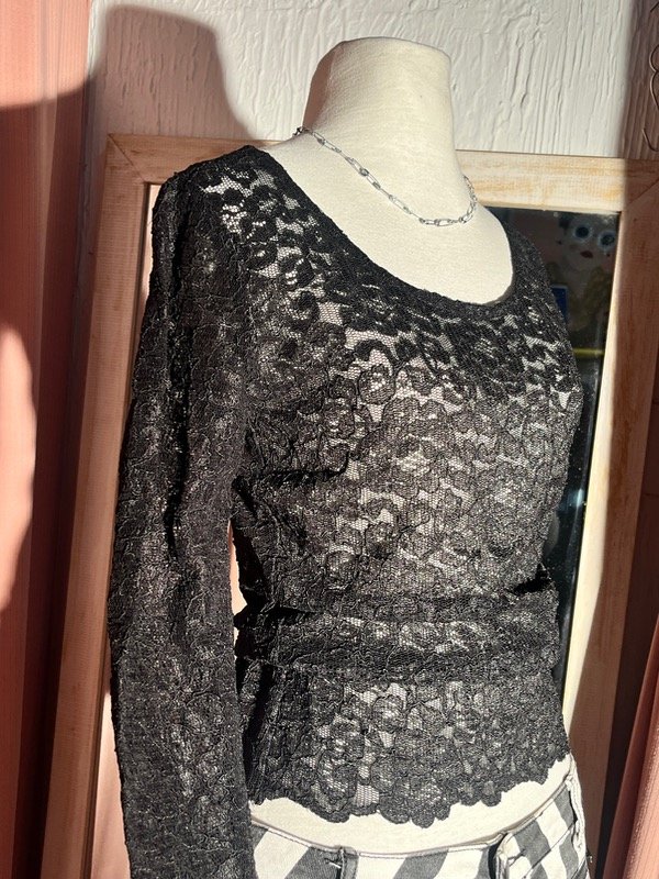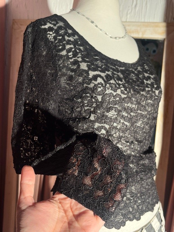 Remera de encaje elastizado, bien negra, talle S y Va para otros talles porque se estira