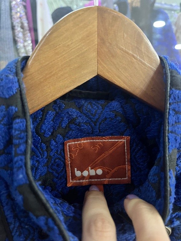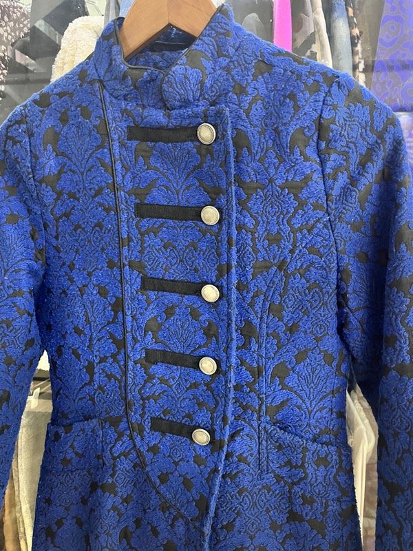 Tapado corto de tela estilo brocado, talle S
