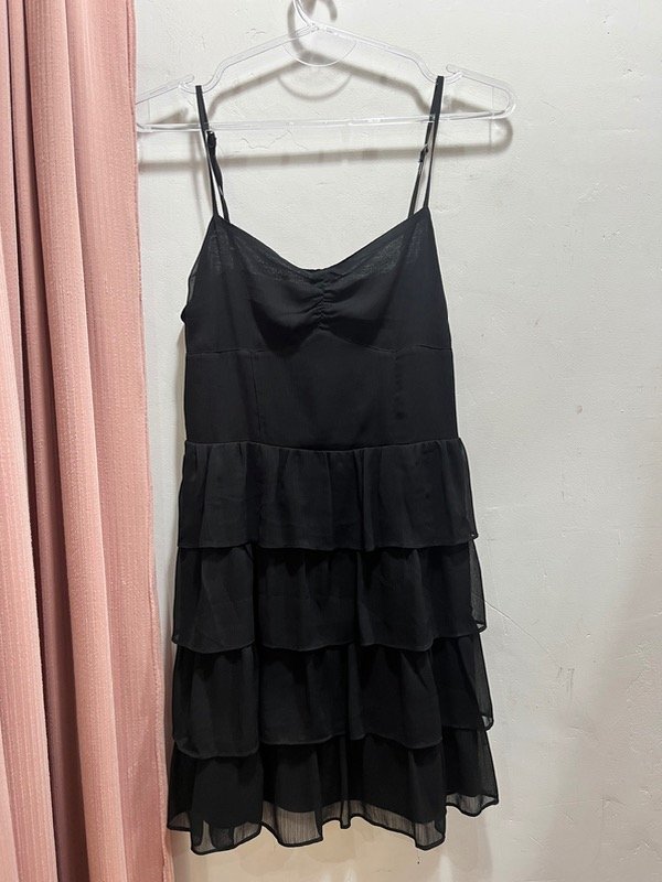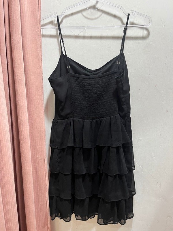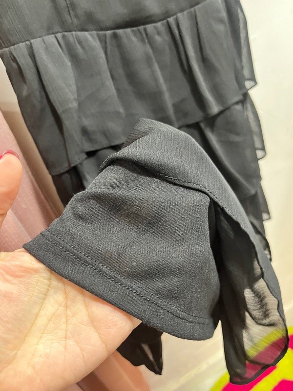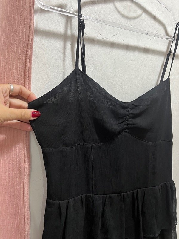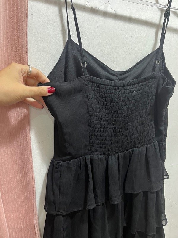 Vestido de gasa con volados, espalda elastizada adaptable y breteles ajustables