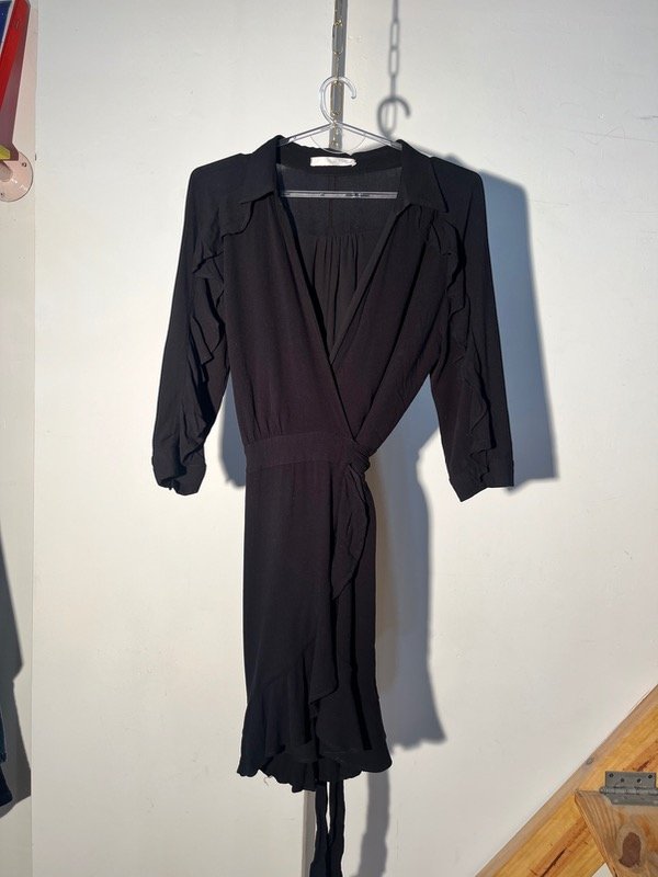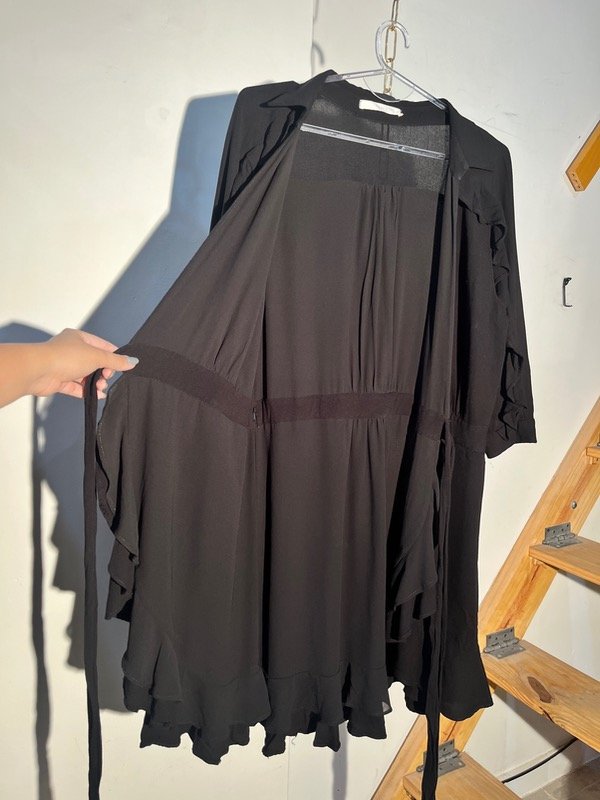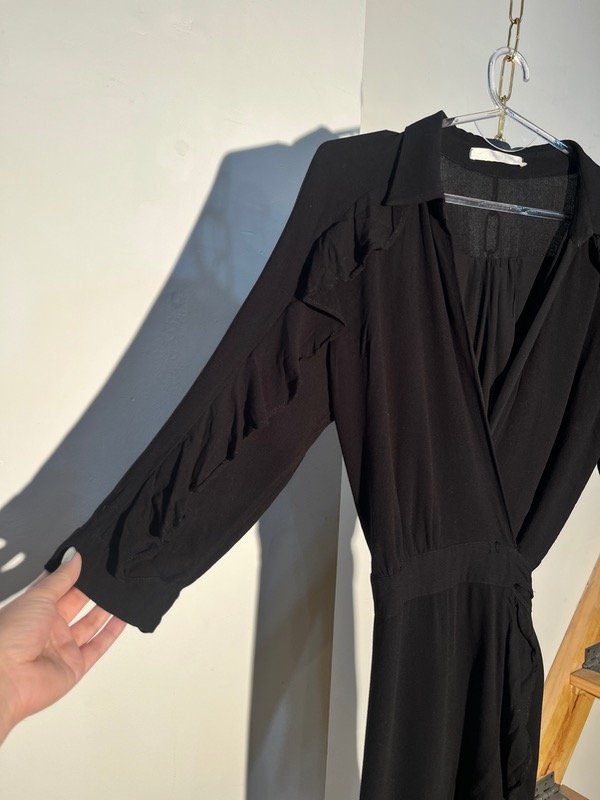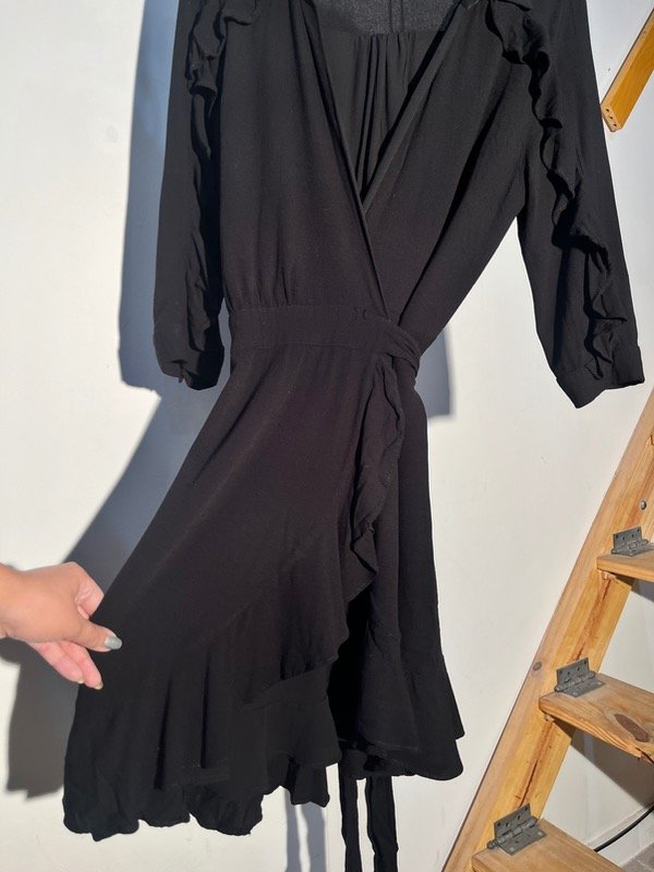 Vestido de rayón cruzado con forro de gasa y mangas 3/4