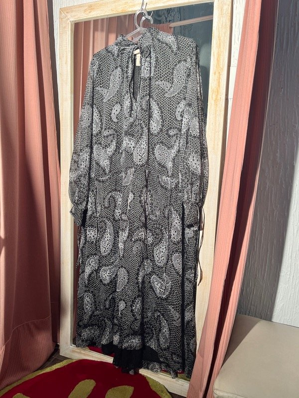 Vestido de gasa forrado, estilo boho chic, talle L, igual a nuevo, tiene tiras para atar y entallar o usar suelto ✨