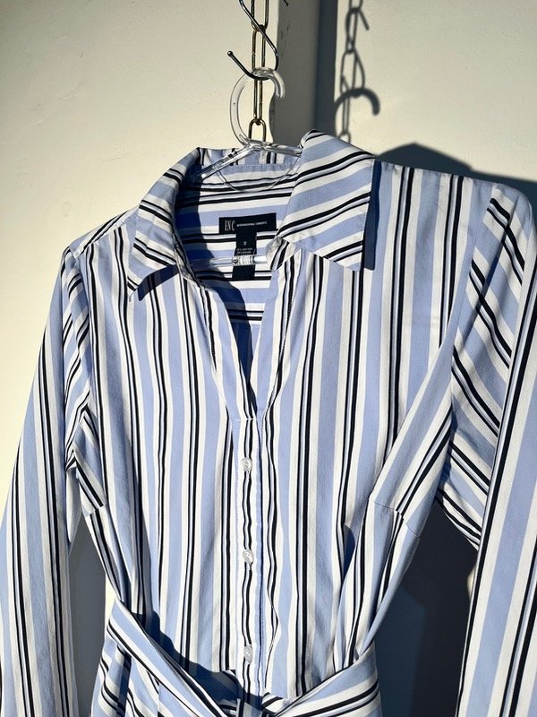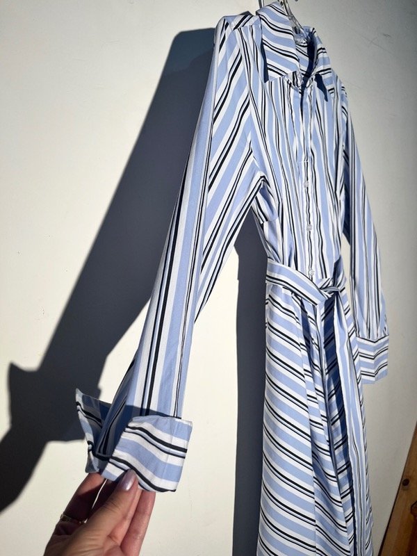 Vestido camisero con falda amplia y cinto para ajustar la cintura, mangas ajustables