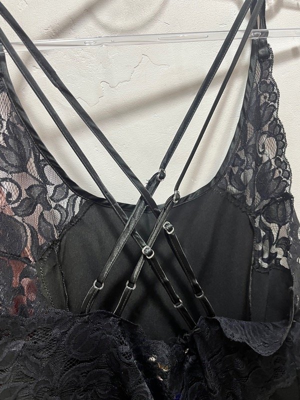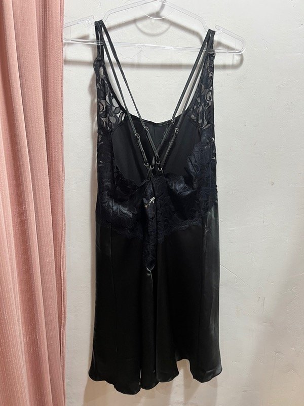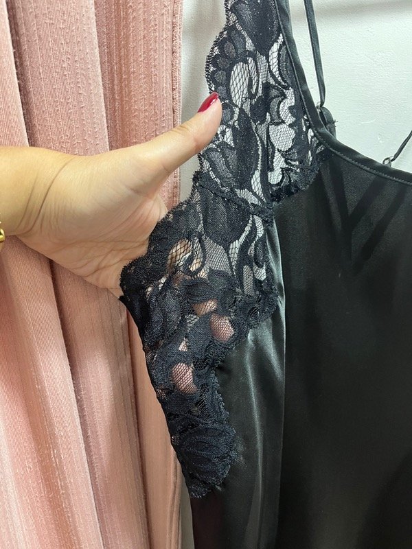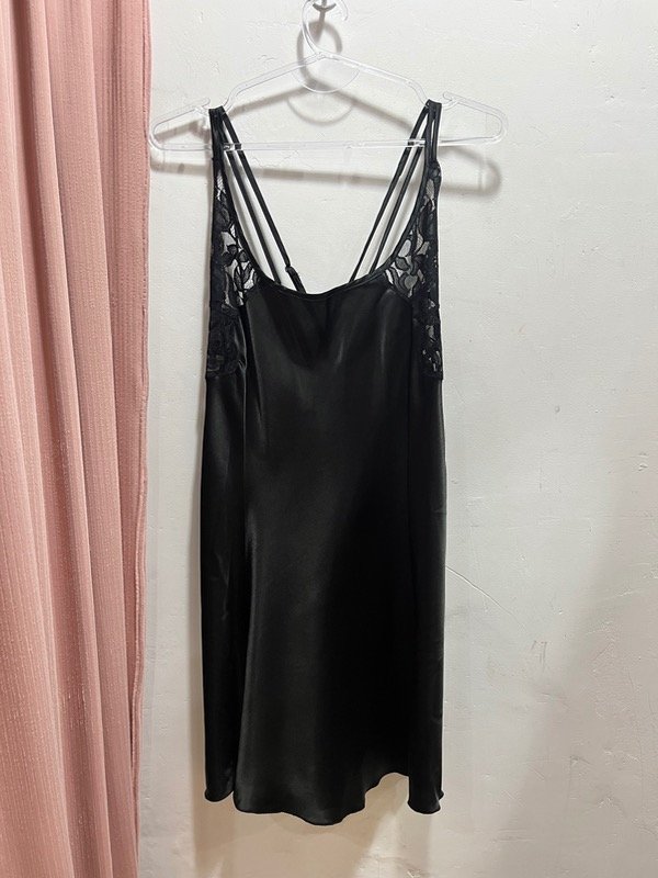 vestido lencero de satén con encaje y breteles ajustables, talle L/XL
